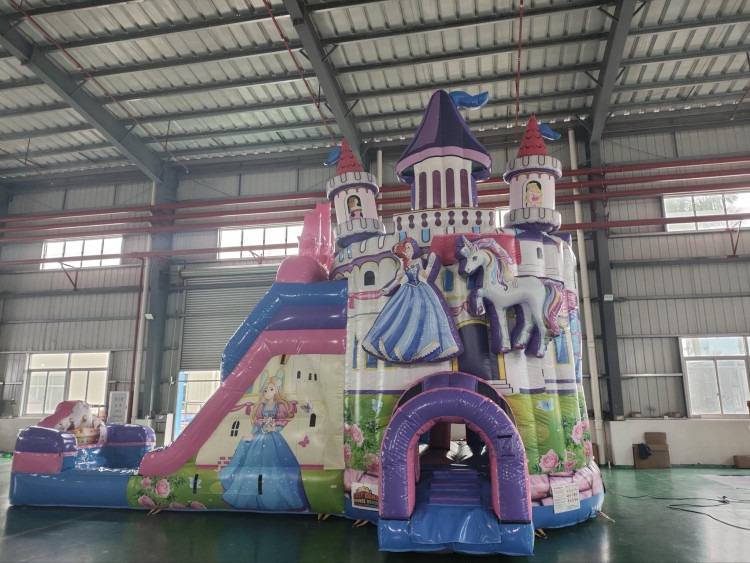 Princess Castle Combo — a royal, all-in-one inflatable designed for parties and events. This combo unit measures 30 feet long by 19 feet wide and stands 17 feet 4 inches tall, offering a spacious play area with ample room for bouncing, sliding, and imaginative play. Built as a combo, it combines a bouncing court with a slide and enclosed obstacles, giving kids a variety of activities in a single rental. The tall, turret-like design creates a striking, castle-inspired presence that works well as a focal point for birthday parties, school events, and community gatherings. Durable, weather-resistant material and mesh side panels (typical of combos) help keep play visible and ventilated while maintaining safety. Easy to set up and suitable for a range of ages, this Princess Castle Combo provides a magical, memorable experience that keeps children entertained for hours.